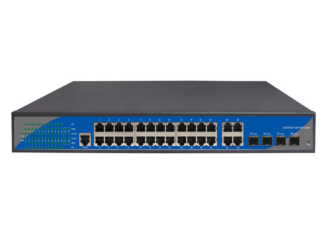 24+4 Giga Poe Switch Web Managed Fiber Switch Support 802.3af/at